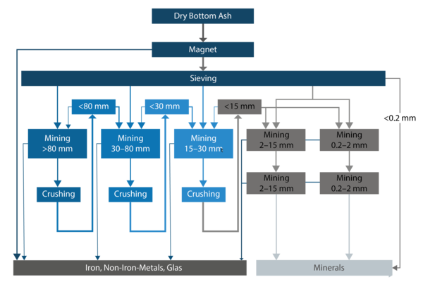 All the findings since the foundation was established have been incorporated into the process of the first large-scale industrial bottom ash processing plant of ZAV Recycling AG at the Hinwil site. This was designed for a capacity of 200,000 tons per year and was put into operation in 2016. Currently, a good 100,000 annual tons of dry slag are processed.